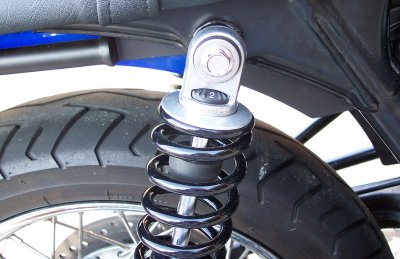 The damping force is adjustable by means of the adjustment disc in the upper eye. As circumstances and/or load may require, you may choose from the following four positions (clicks numbered 1-2-3-4): position1 for very smooth damping under modest loading position2 for solo and pillion passenger use on average to good roads position3 for sporting solo riding or for use with pillion passengers and luggage position4 heavier adjustment than strictly necessary for use with pillion passenger and luggage